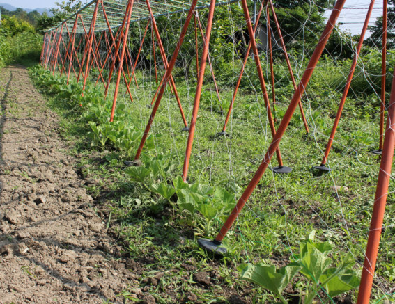 支柱と網をかけました。 |